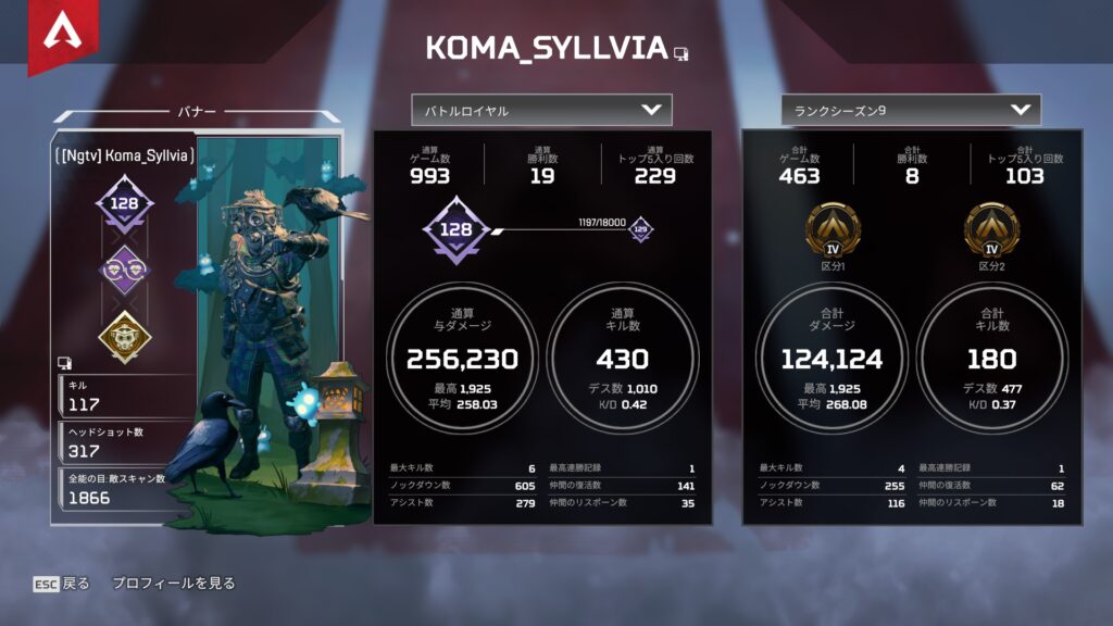 2021年8月4日でAPEXのシーズン9「英雄の軌跡」が終了し、